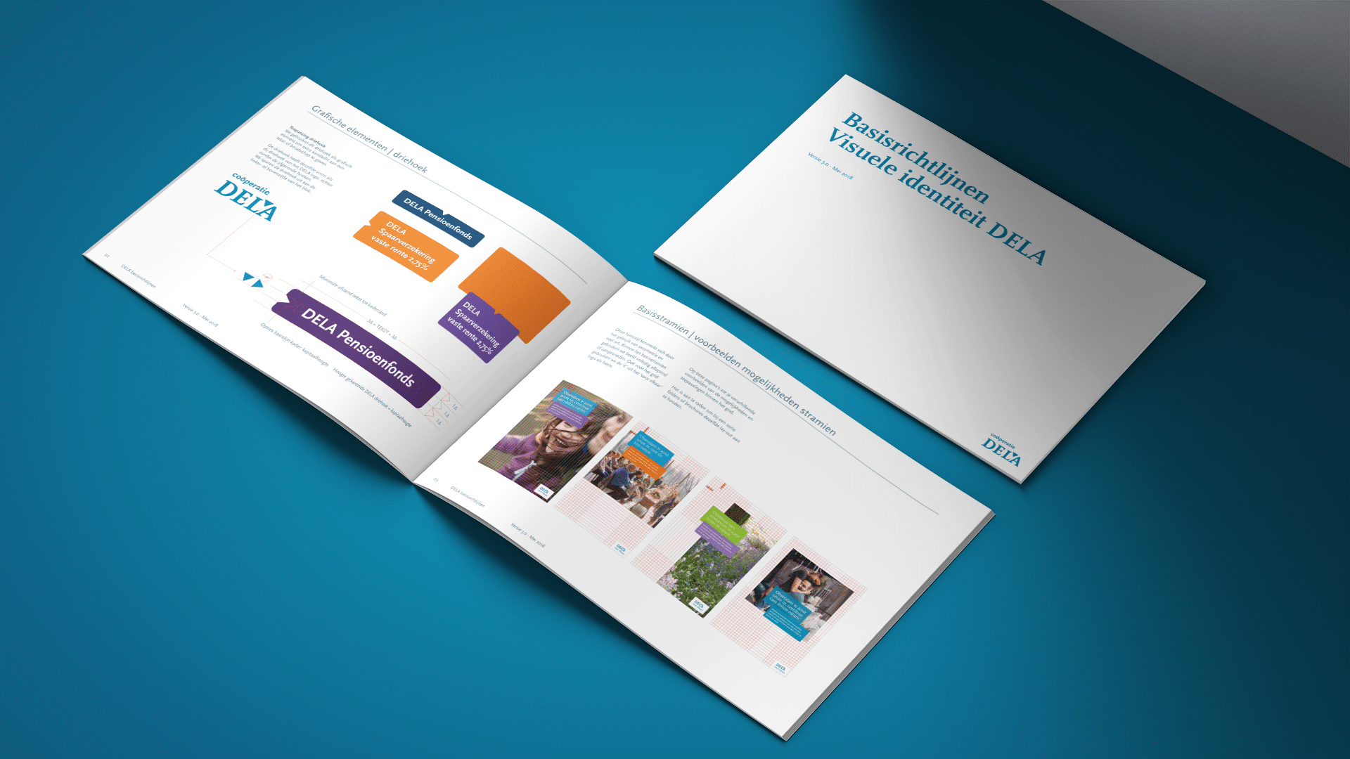 Doorontwikkeling huisstijl, campagnes, jaarverslag, propositie brochures en belevingsgids voor Dela.